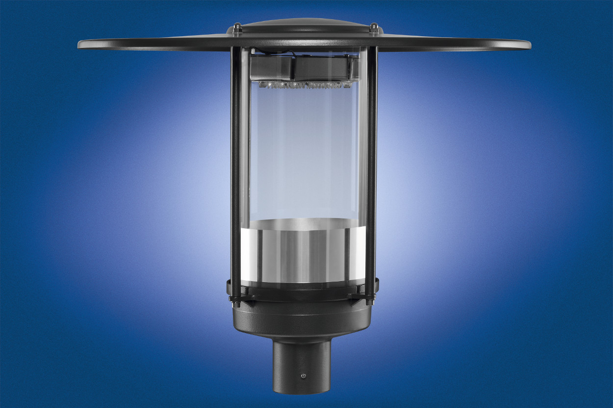 High-Power LED 1.100 lm bis 3.000 lm, 3.000° K - im oberen Teil der Leuchte. (Alternativ 4.000° K) Symmetrische oder asymmetrische blendfreie Lichtverteilung mittels hochwertiger LEDIL-Linsentechnik 10 W bis 28 W. Dimmbarer und programmierbarer Treiber (DALI) nach Wahl gemäß Prüfnorm IEC-61643-11. |
